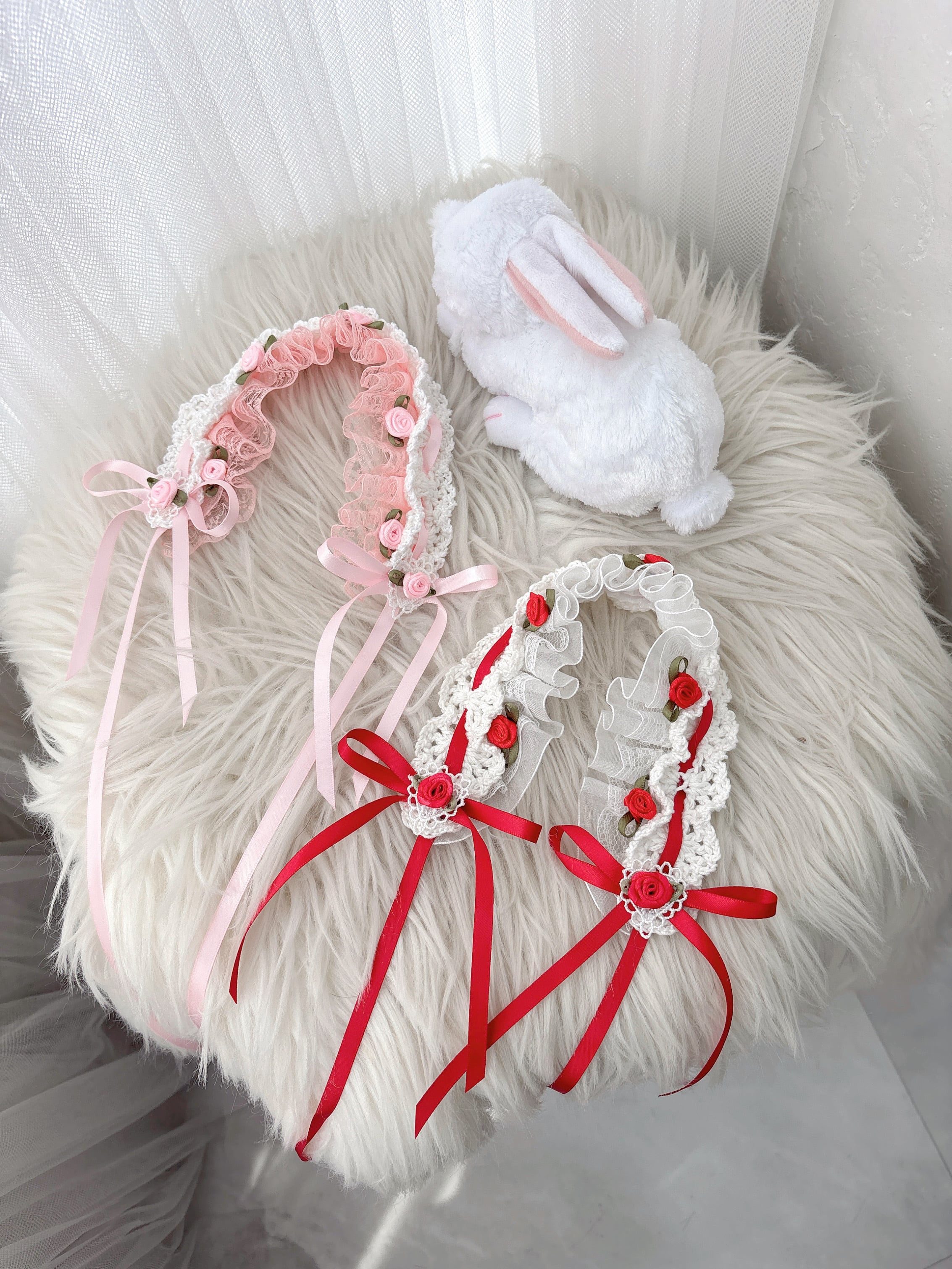 ローズやフリル、レース、リボンなどがかわいいヘッドドレスです。